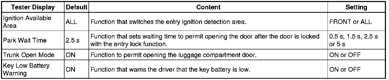 THEFT DETERRENT / KEYLESS ENTRY: SMART ACCESS SYSTEM WITH PUSH-BUTTON START (for Entry Function): CUSTOMIZE PARAMETERS