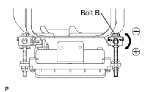 If the divergence is not as specified, use a screwdriver to adjust bolt B until the divergence of the radar beam axis is 0°.