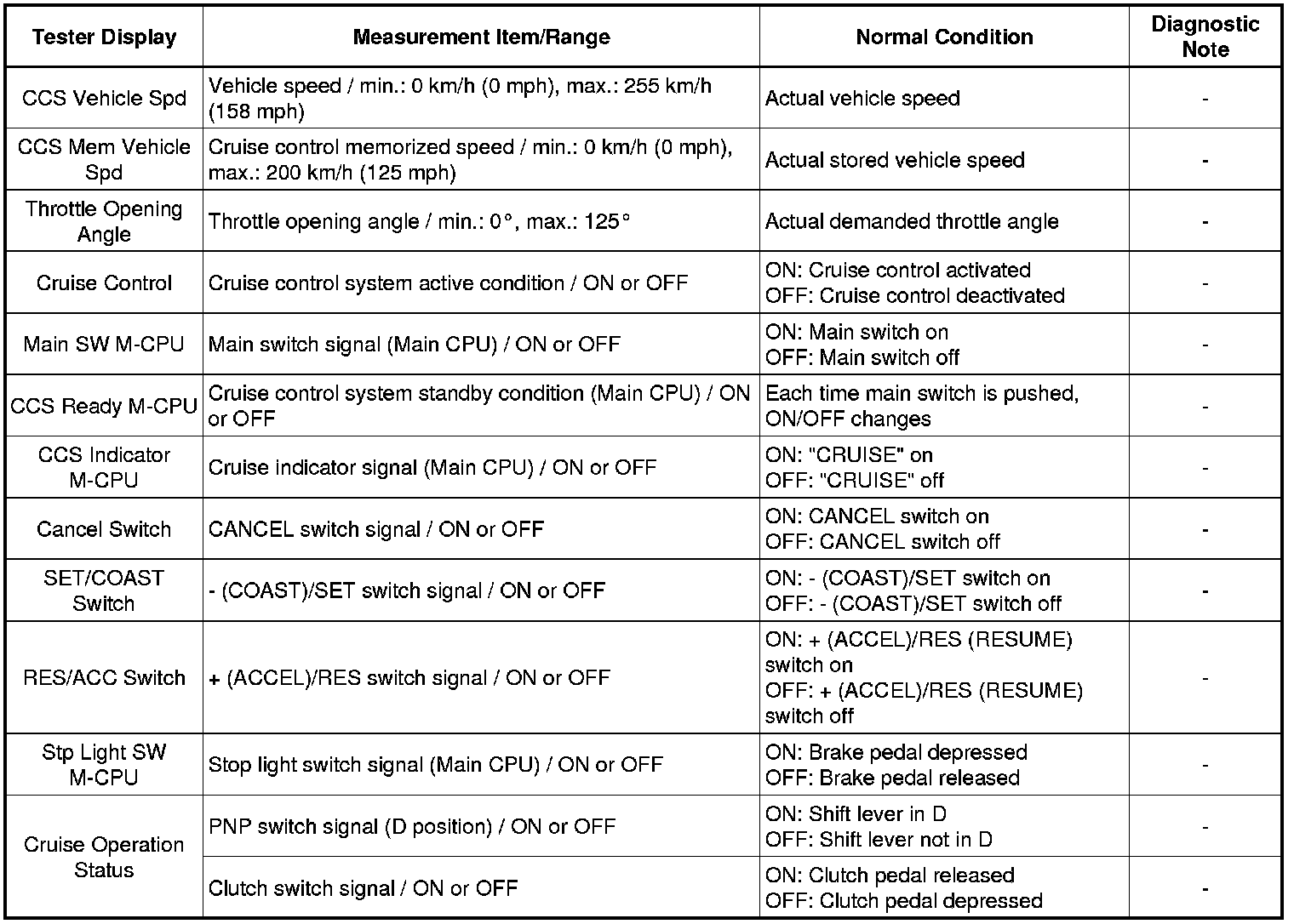 CRUISE CONTROL: CRUISE CONTROL SYSTEM: DATA LIST / ACTIVE TEST