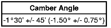 If the measured value is not within the specified range, inspect the suspension parts for damage and wear. Replace parts as necessary because camber cannot be properly adjusted with any damaged or worn parts.