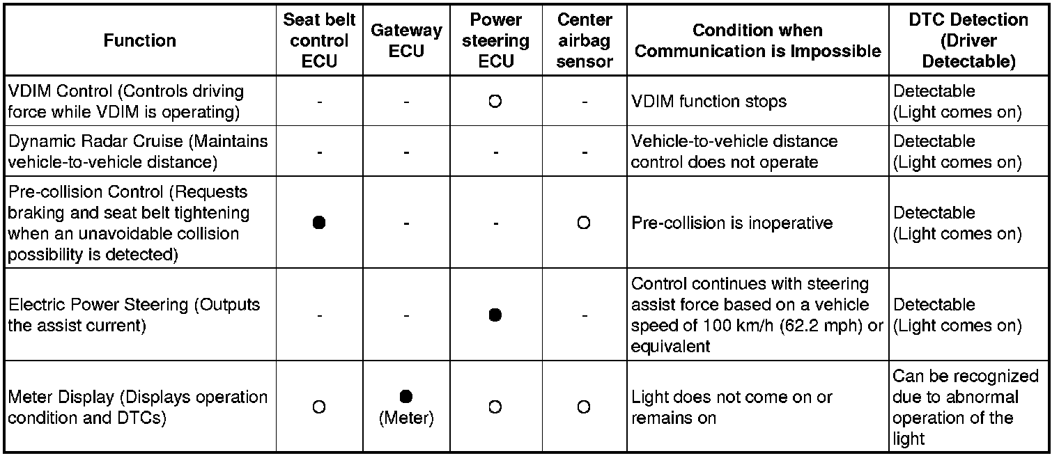 (b) Effects on each system when communication is impossible. (For further details, see the pages for each system.)