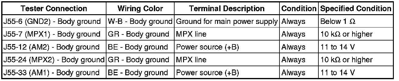 If the result is not as specified, there may be a malfunction on the wire harness side.