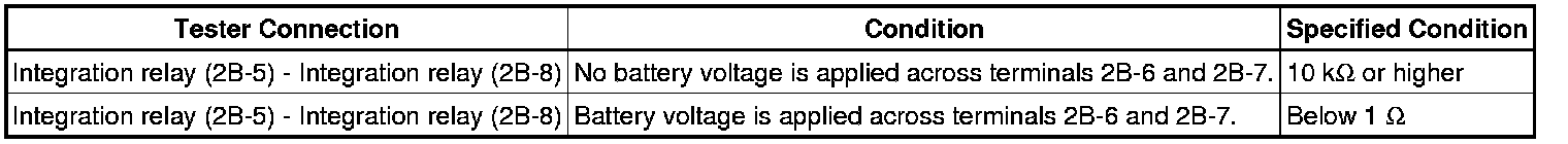 If the resistance is not as specified, replace the integration relay.