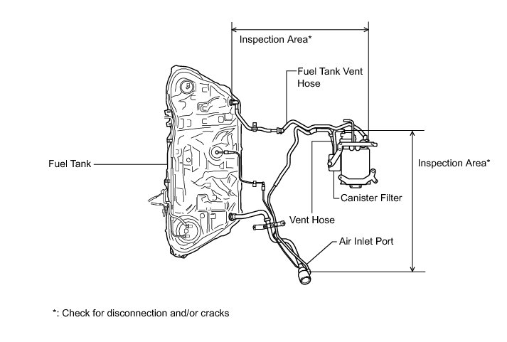 When replacing the canister, check the canister pump module interior and related pipes for water, fuel and other liquids. If liquids are present, check for disconnections and/or cracks in the following: 1) the pipe from the air inlet port to the canister pump module; 2) the canister filter; and 3) the fuel tank vent hose.