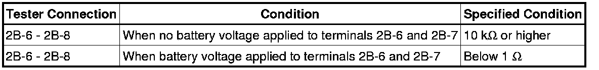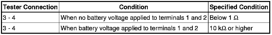 (1) Apply battery voltage to both terminals. Check that the pump operates.