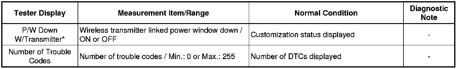 WINDOW / GLASS: POWER WINDOW CONTROL SYSTEM: DATA LIST / ACTIVE TEST