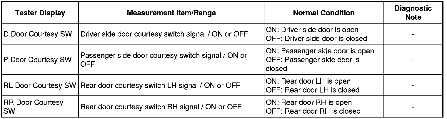 DOOR LOCK: WIRELESS DOOR LOCK CONTROL SYSTEM: DATA LIST / ACTIVE TEST