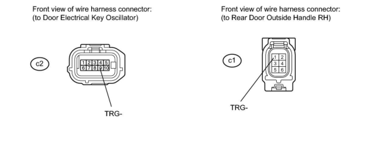 7. CHECK HARNESS AND CONNECTOR (REAR DOOR OUTSIDE HANDLE RH - DOOR ELECTRICAL KEY OSCILLATOR)