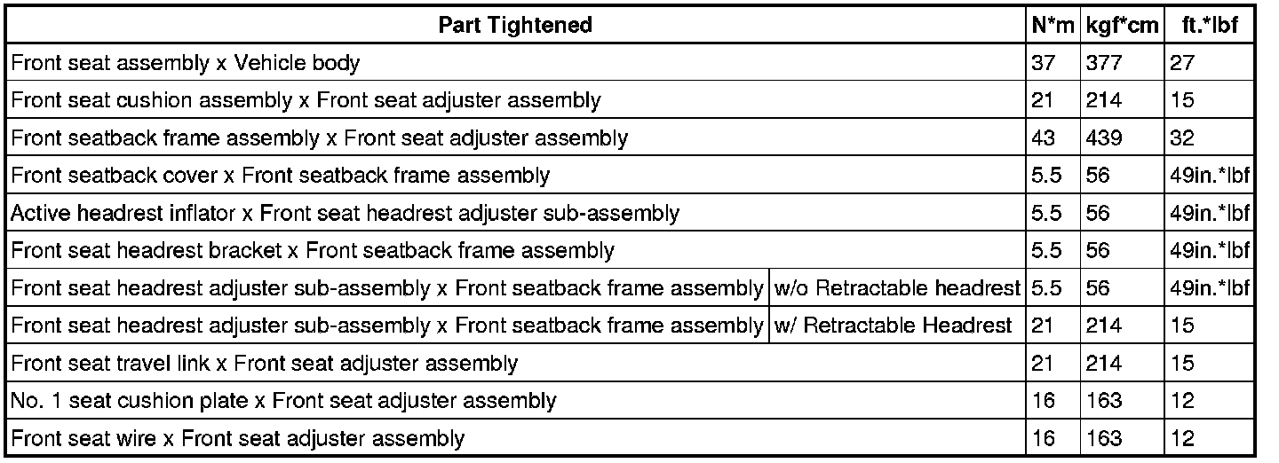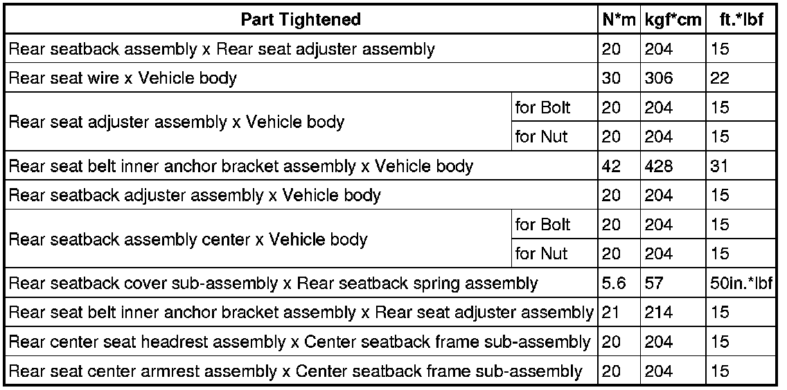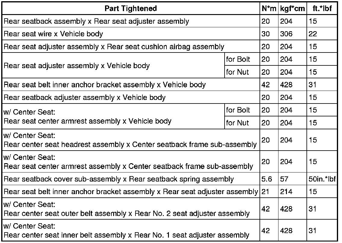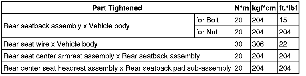 SERVICE SPECIFICATIONS: SEAT: TORQUE SPECIFICATIONS