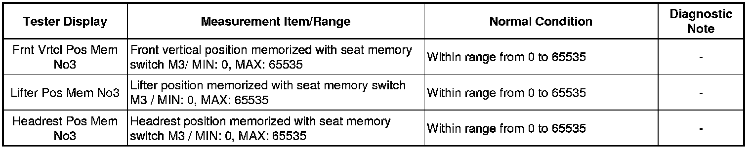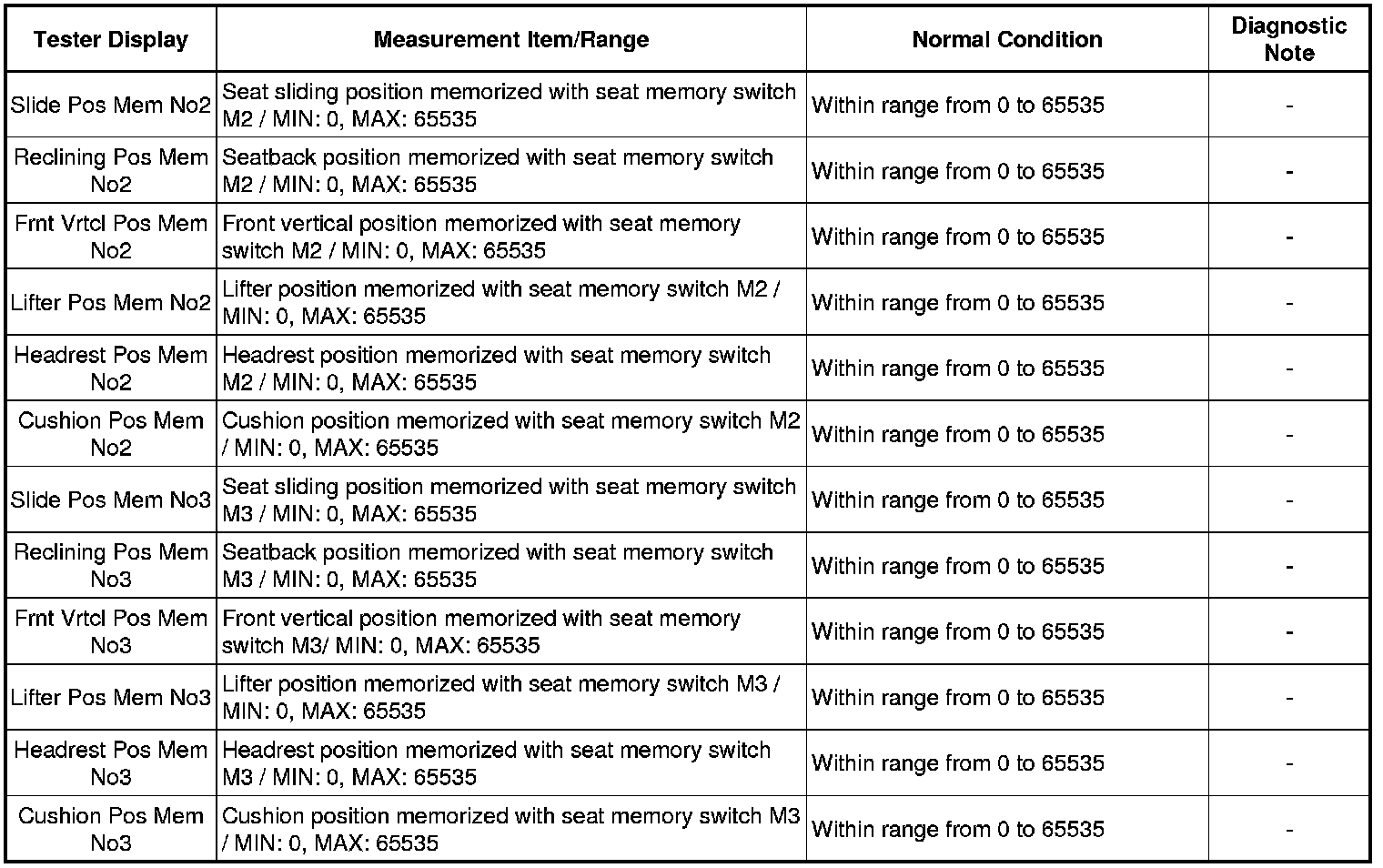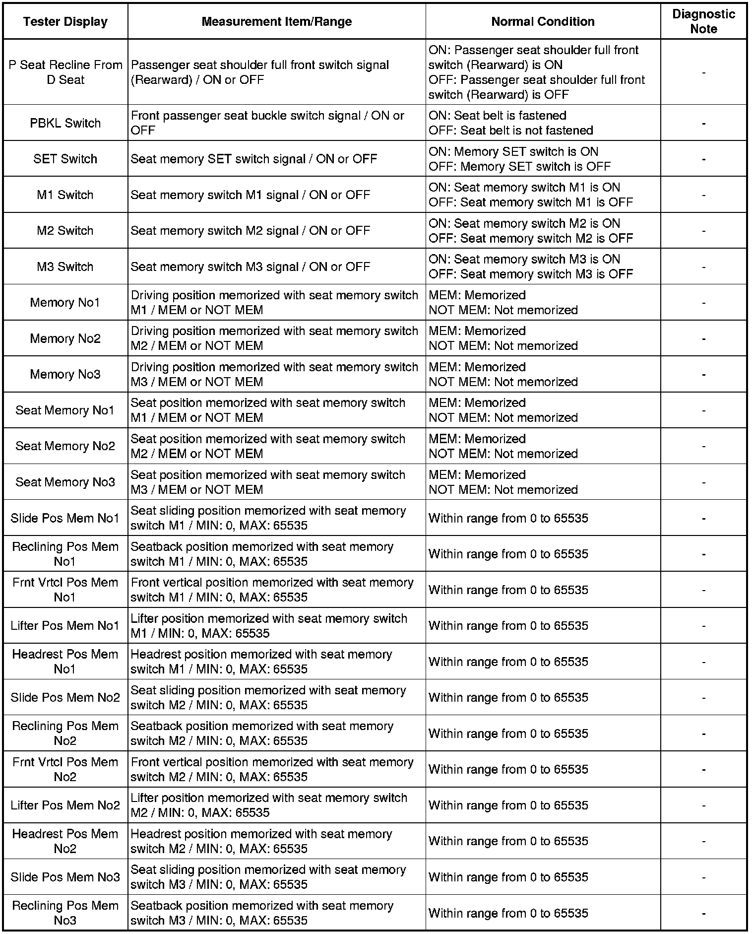 SEAT: FRONT POWER SEAT CONTROL SYSTEM: DATA LIST / ACTIVE TEST