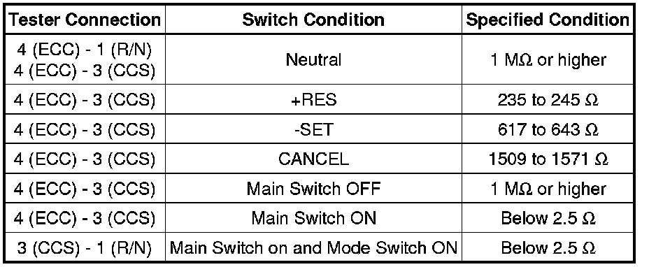Cruise Control Switch: Testing and Inspection