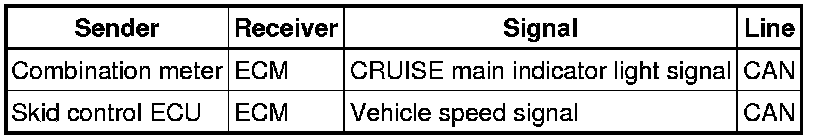 The ECM receives signals such as ON-OFF, -/SET, +/ RES, and CANCEL from the cruise control switch.