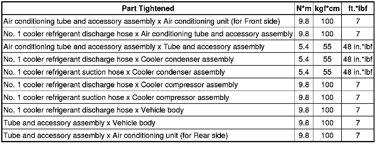 SERVICE SPECIFICATIONS: AIR CONDITIONING: TORQUE SPECIFICATIONS