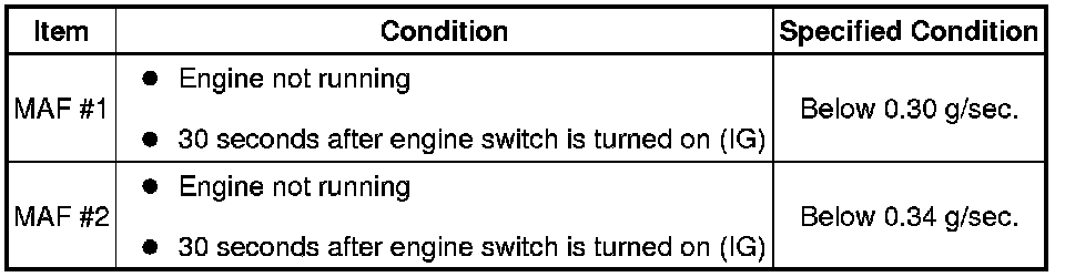 * Perform the MAF meter inspection according to the procedures below.