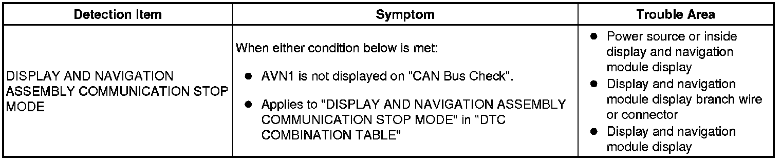 CAN COMMUNICATION: CAN COMMUNICATION SYSTEM: Display and Navigation Assembly Communication Stop Mode