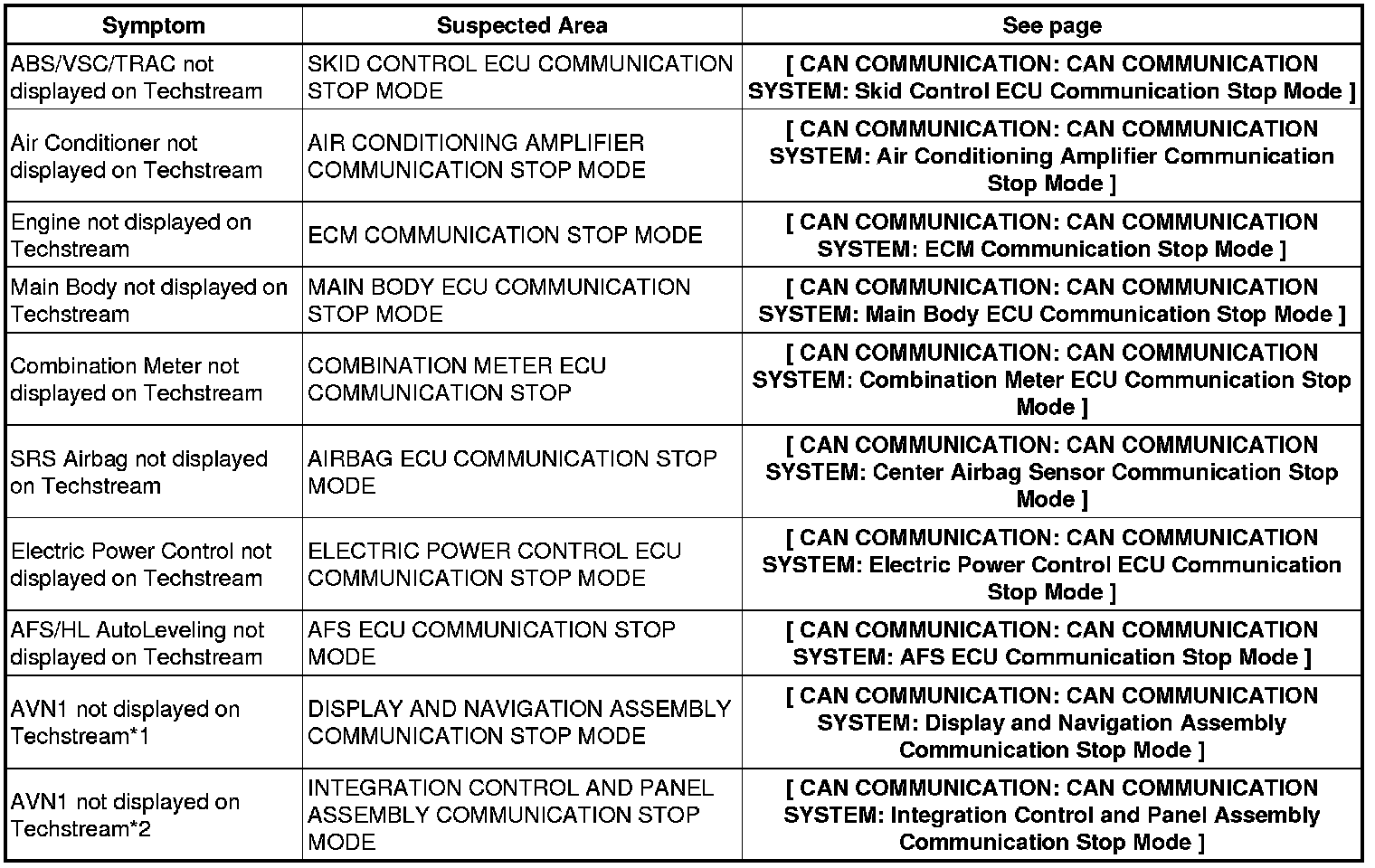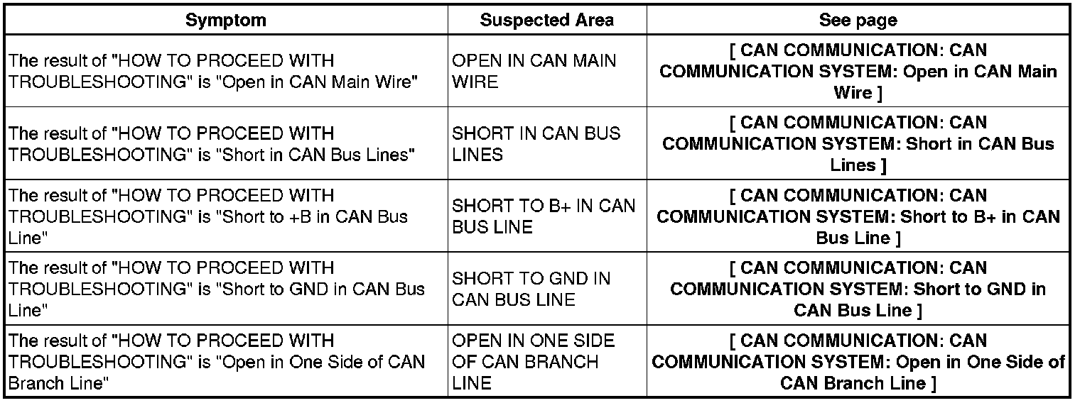 CAN COMMUNICATION: CAN COMMUNICATION SYSTEM: PROBLEM SYMPTOMS TABLE