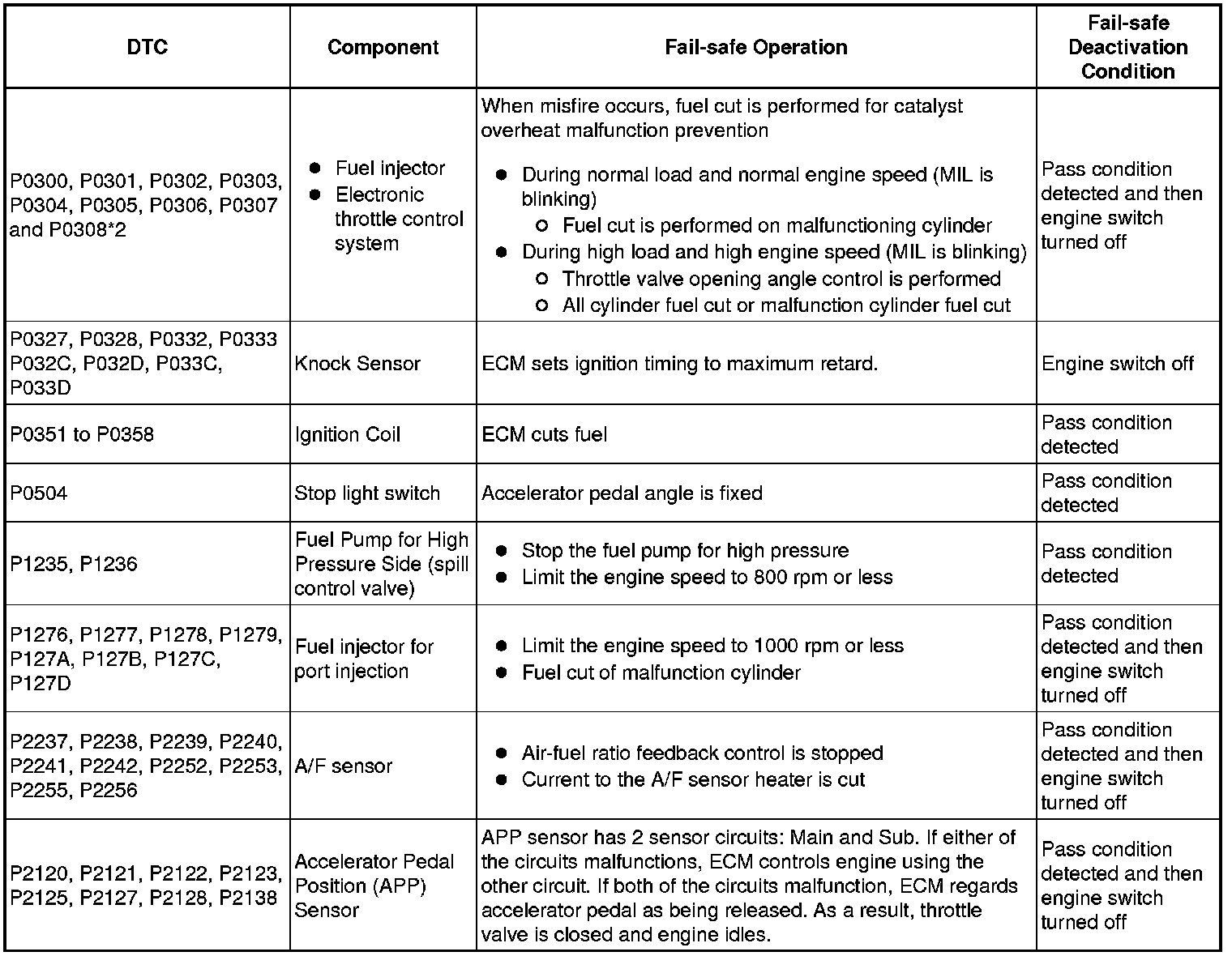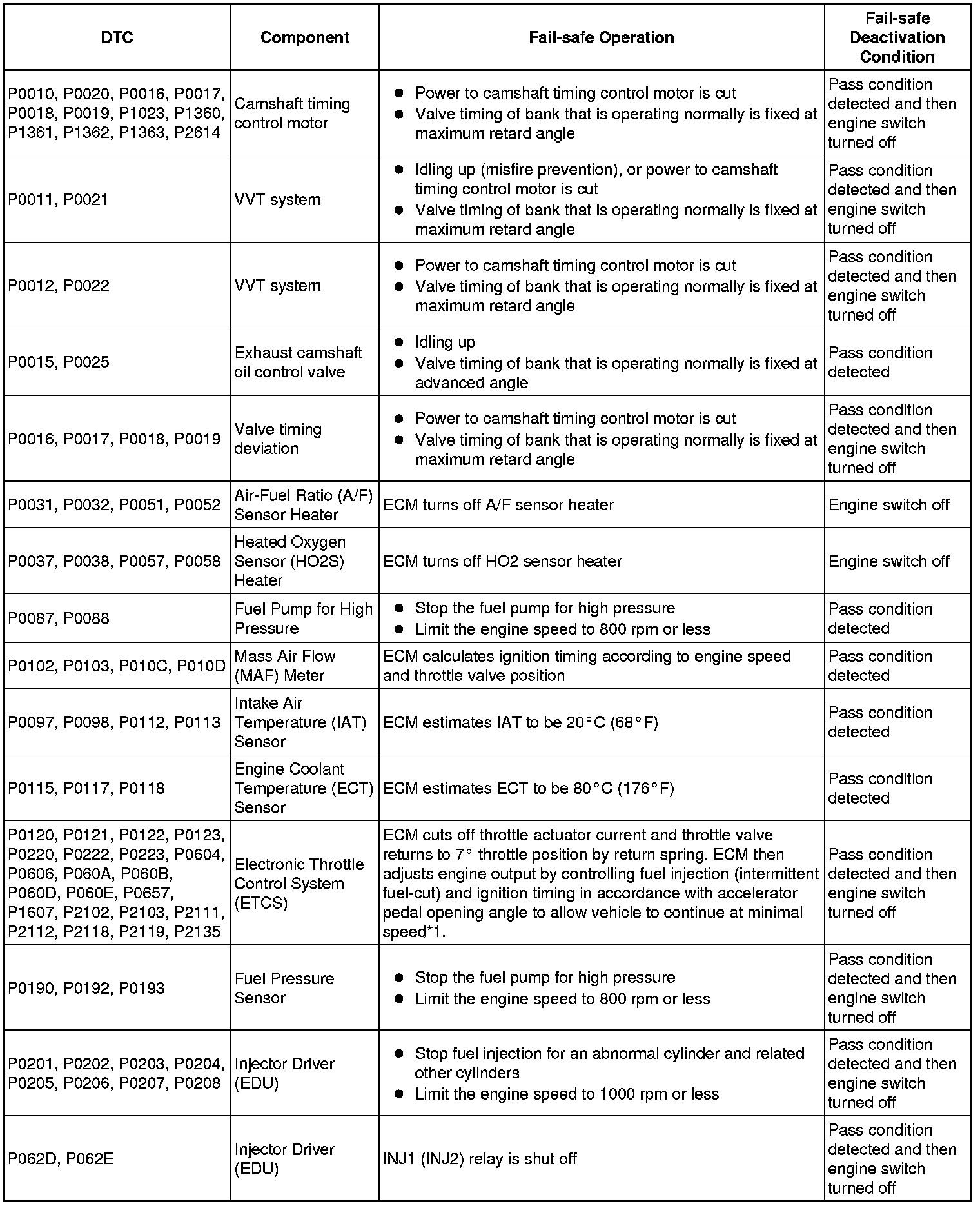 If any of the following DTCs are set, the ECM enters fail-safe mode to allow the vehicle to be driven temporarily.