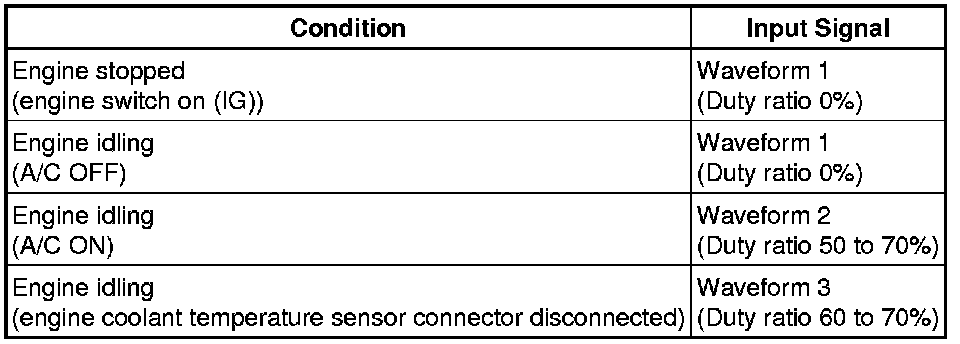 If the output signal is abnormal, there is a malfunction in the ECM or front controller.
