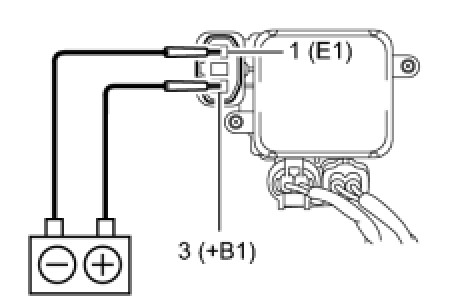 (2) Connect the battery to the cooling fan ECU at terminals 3 (+B1) and 1 (E1).