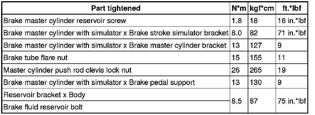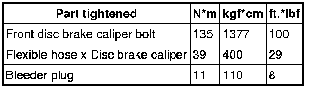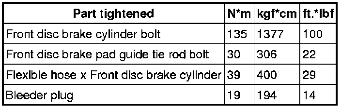 SERVICE SPECIFICATIONS: BRAKE: TORQUE SPECIFICATIONS