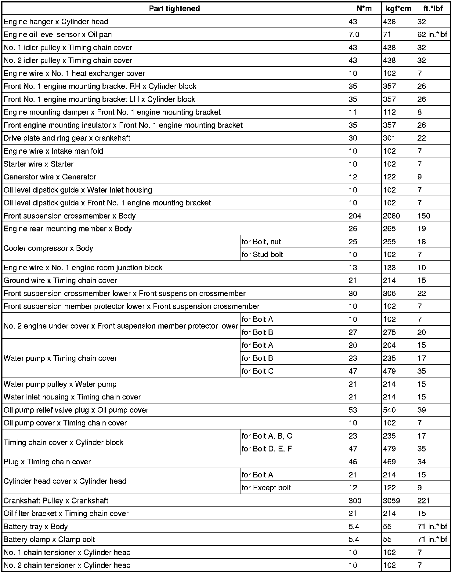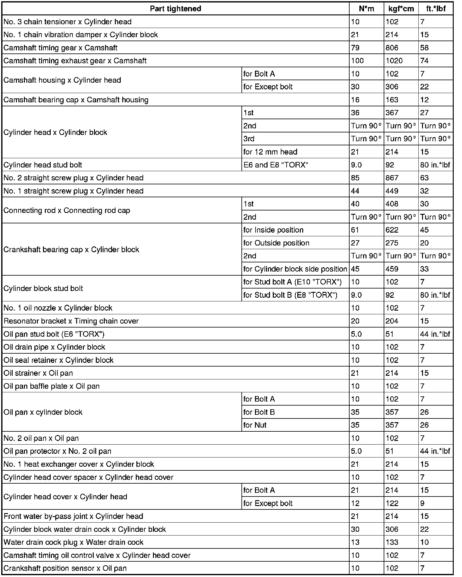 SERVICE SPECIFICATIONS: 1UR-FSE ENGINE MECHANICAL: TORQUE SPECIFICATIONS