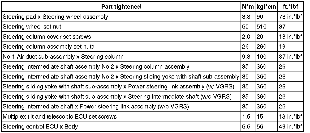 : TORQUE SPECIFICATIONS