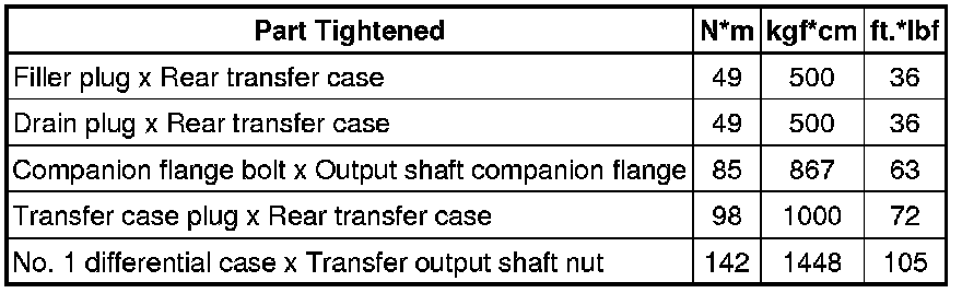 SERVICE SPECIFICATIONS: LF1A TRANSFER: TORQUE SPECIFICATIONS
