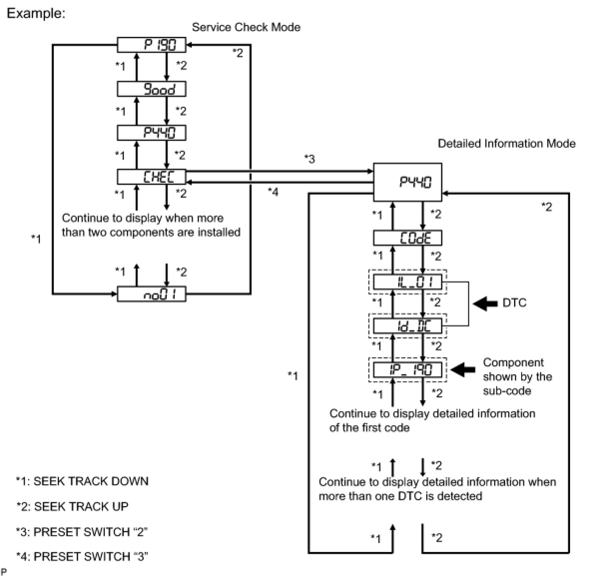 (b) Press the preset switch "2" to change to "Detailed Information Mode".