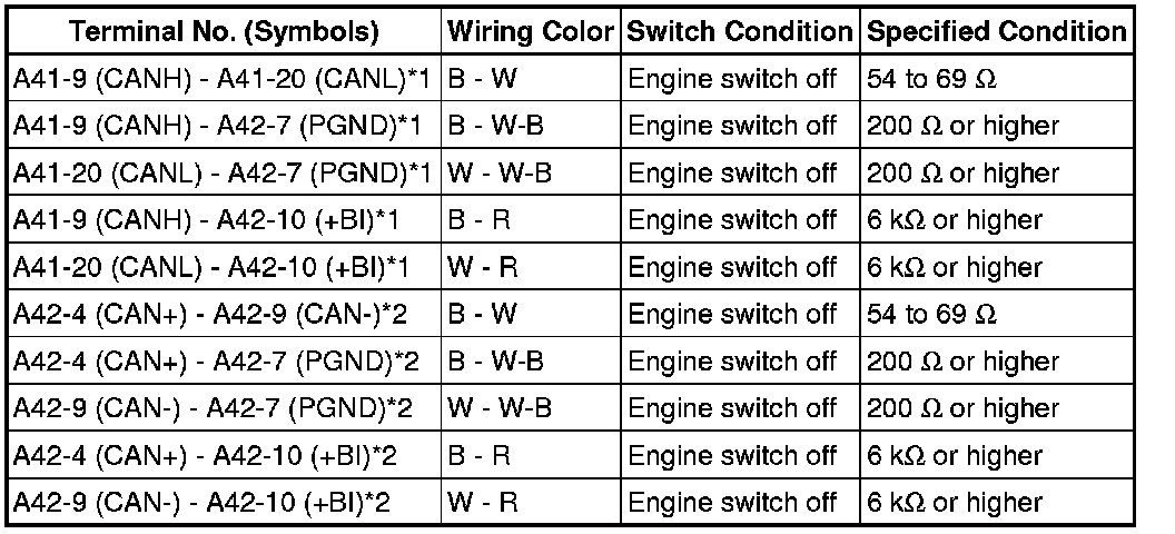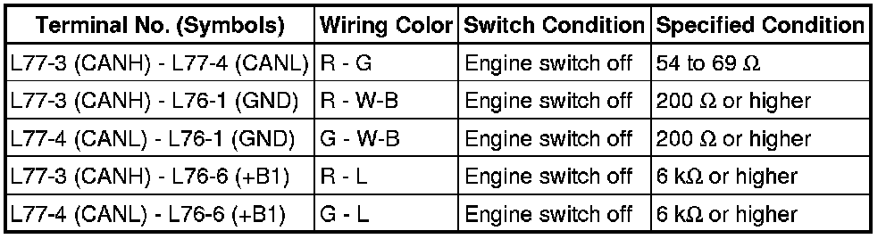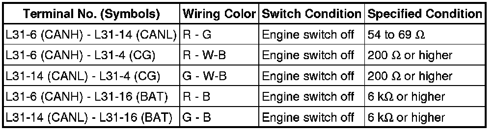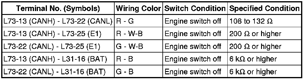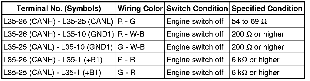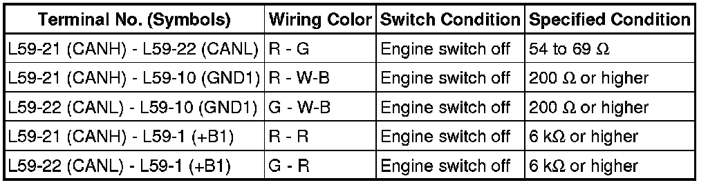 * Before measuring the resistance, leave the vehicle for at least 1 minute and do not operate the engine switch, any switches or doors. If doors need to be opened in order to check connectors, open the doors and leave them open.