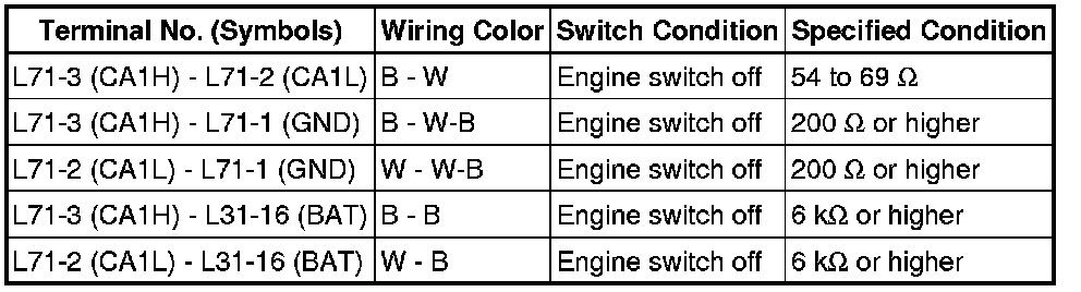 (a) Disconnect the cable from the negative (-) battery terminal before measuring the resistances of the main wire and the branch wire.