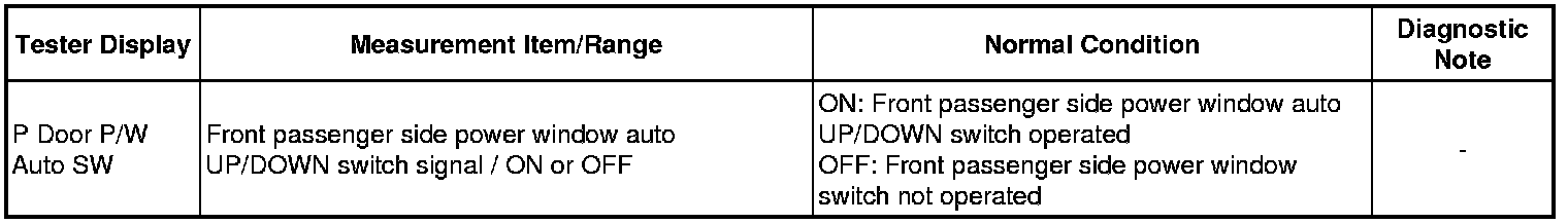 - Front Passenger Side Power Window Auto Up / Down Function does not Operate with Front Passenger Side Power Window Switch