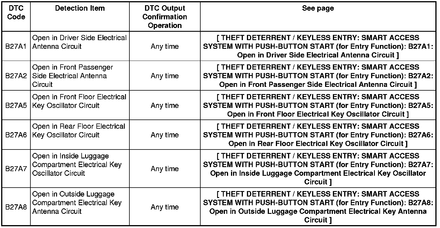 THEFT DETERRENT / KEYLESS ENTRY: SMART ACCESS SYSTEM WITH PUSH-BUTTON START (for Entry Function): DIAGNOSTIC TROUBLE CODE CHART
