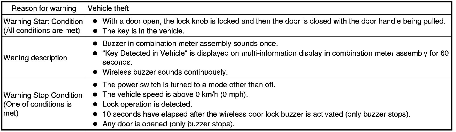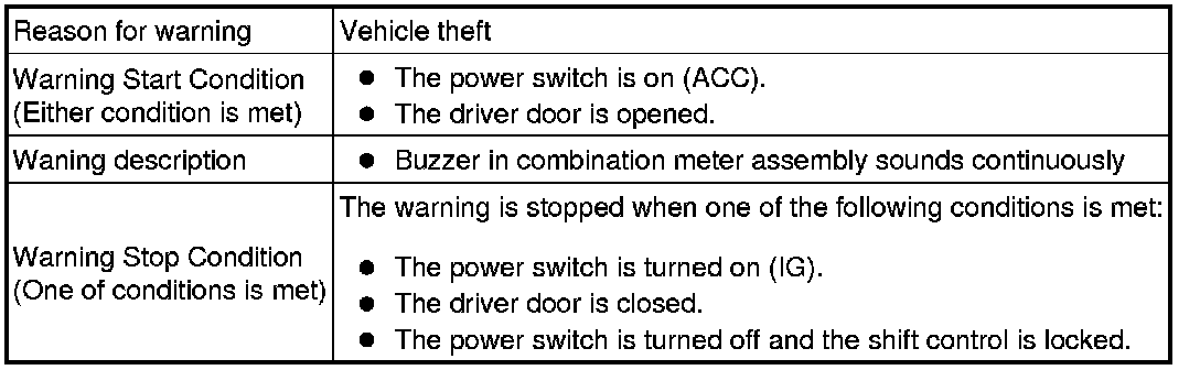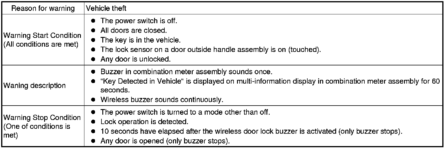 * A warning message appears on the multi-information display when the vehicle starts moving without the registered key in the vehicle.