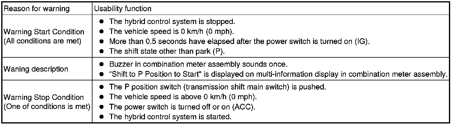 A message indicating how to start the hybrid control system appears on the multi-information display when the shift lever is in a position in which the hybrid control system cannot be started.