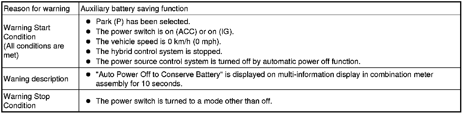 * A warning message appears on the multi-information display when automatic power off operation occurs.
