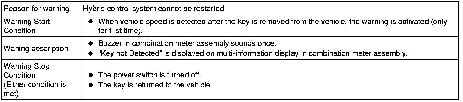 * When the hybrid control system is left running, a passenger leaves the vehicle while holding the key.