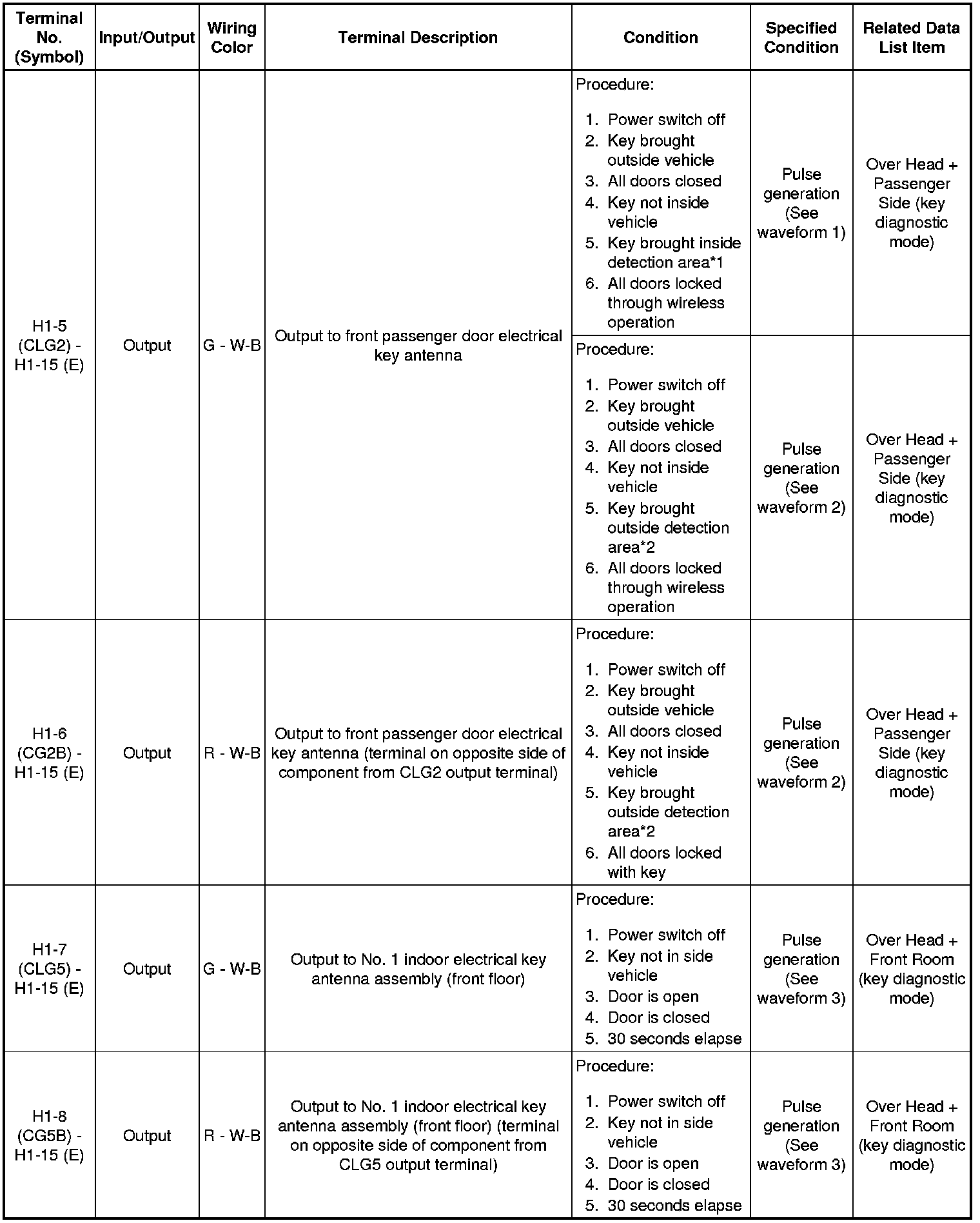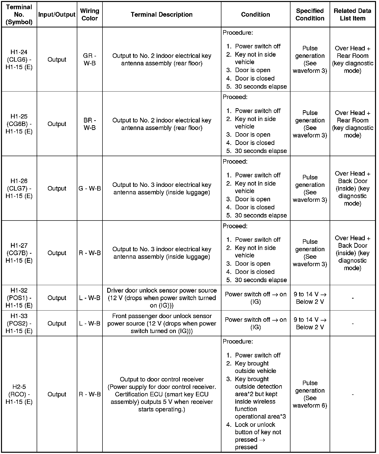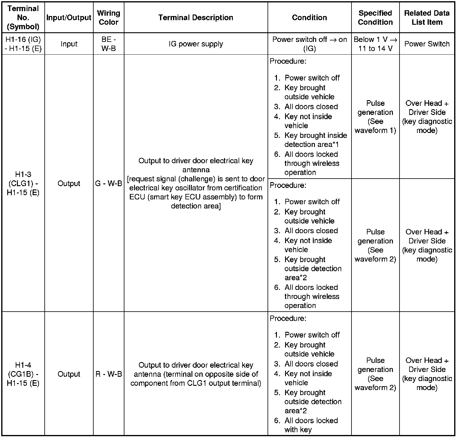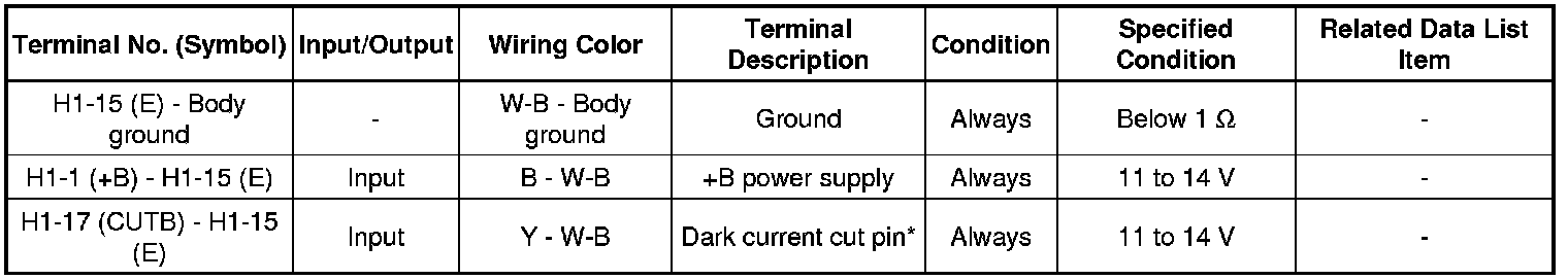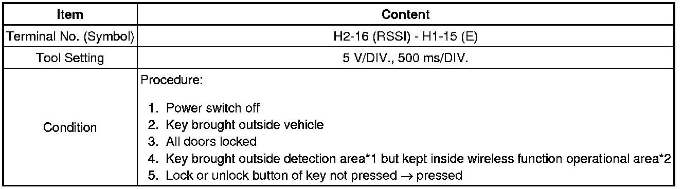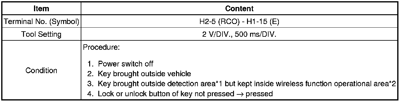 * *: In order to prevent the auxiliary battery from being depleted when the vehicle is shipped long distances, a fuse that cuts unnecessary electrical load while the vehicle is being shipped is set in the circuit. If the fuse is removed, the circuit becomes open. If the fuse that is between the auxiliary battery and terminal CUTB is removed and the circuit is open, the certification ECU (smart key ECU assembly) changes to a certain control mode (example: the transmission of electric waves every 250 ms. that form the detection area stops).