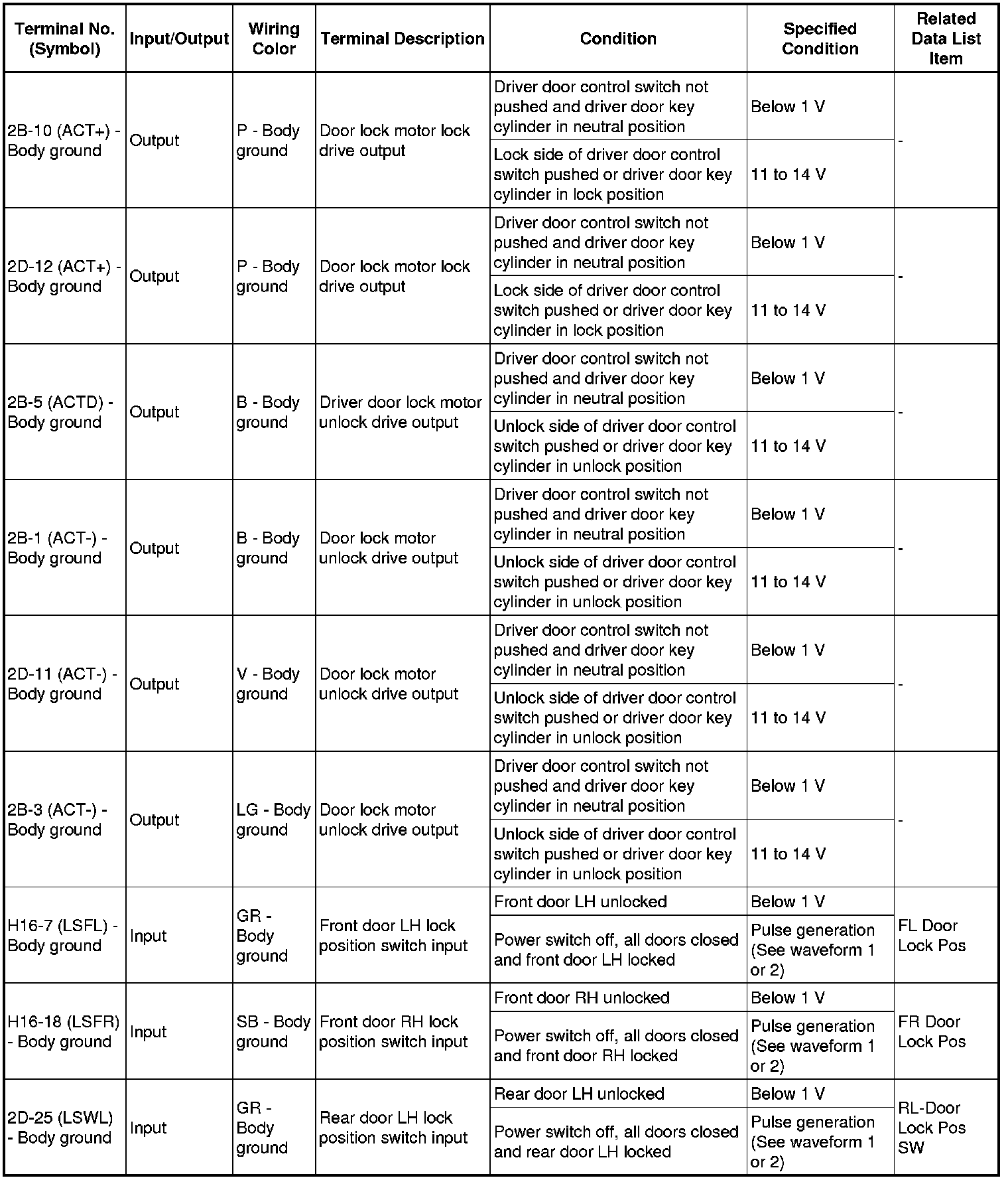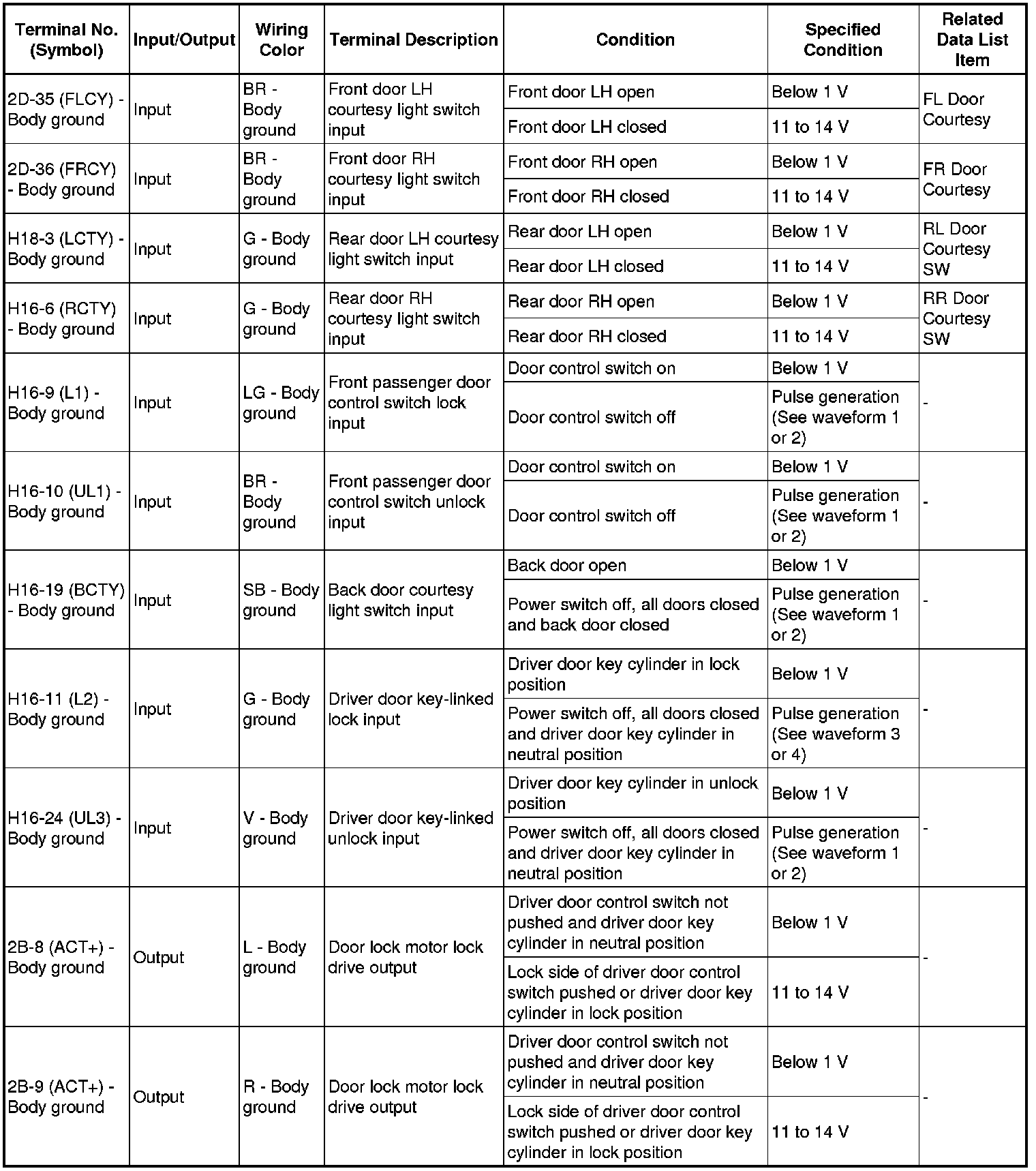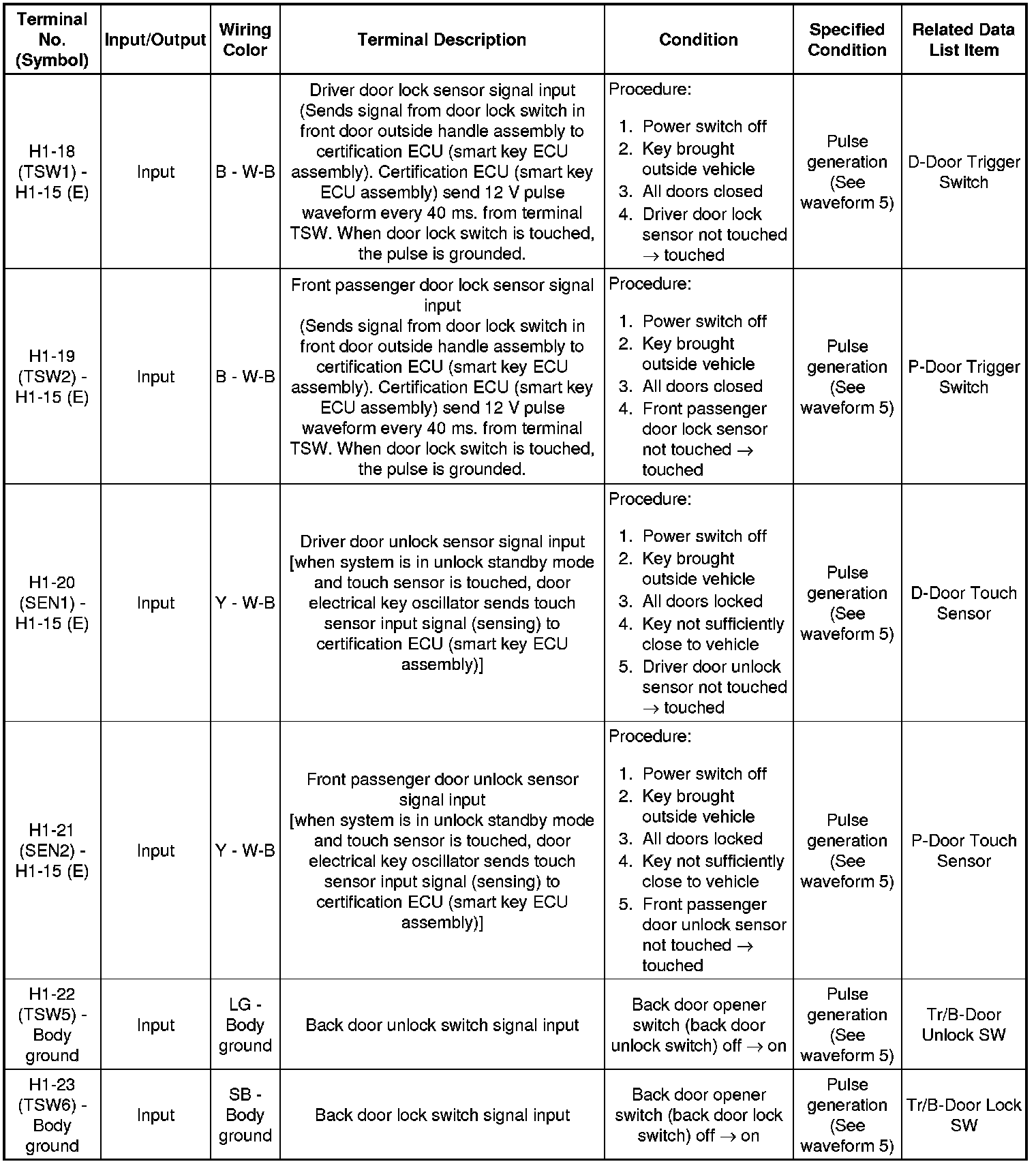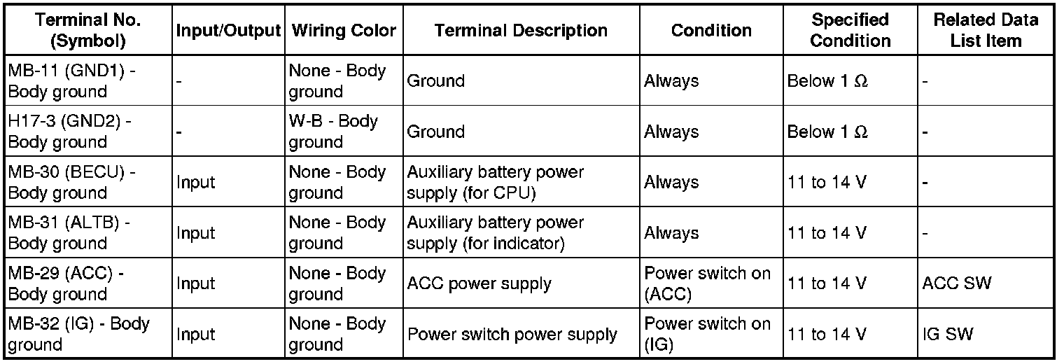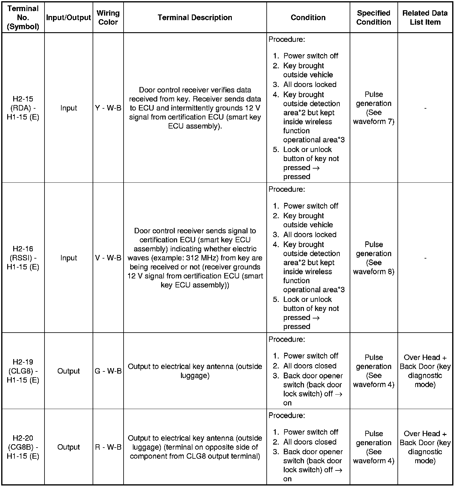 THEFT DETERRENT / KEYLESS ENTRY: SMART ACCESS SYSTEM WITH PUSH-BUTTON START (for Entry Function): TERMINALS OF ECU