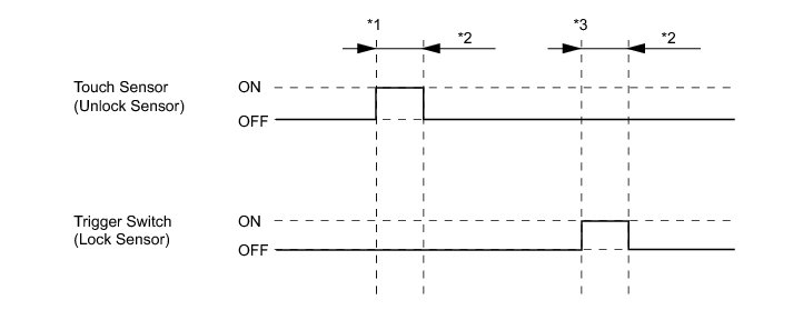 * *1: With power switch off, all doors closed, key not inside vehicle and all doors locked, front door outside handle assembly (unlock sensor) touched.