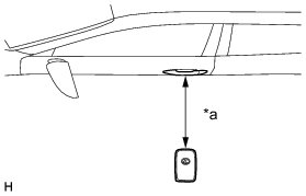 * When the electrical key transmitter is brought near the front door outside handle assembly (for driver door) or electrical key antenna, the possibility of wave interference decreases, and it can be determined if wave interference is causing the problem symptom.