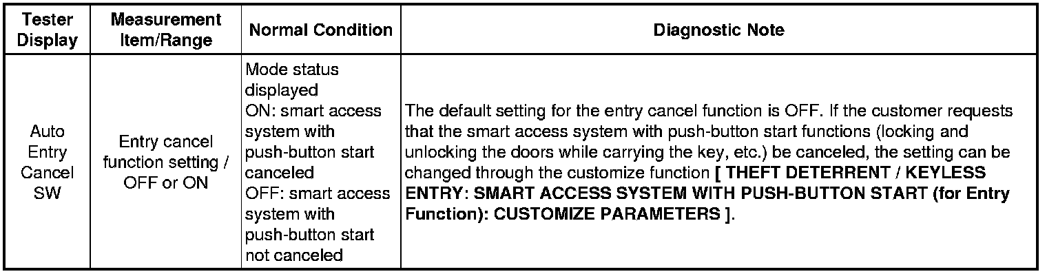 THEFT DETERRENT / KEYLESS ENTRY: SMART ACCESS SYSTEM WITH PUSH-BUTTON START (for Entry Function): All Door Entry Lock/Unlock Functions do not Operate, but Wireless Functions Operate