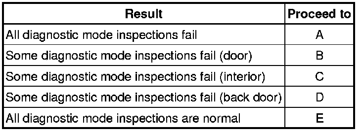 C -- GO TO OTHER PROBLEM (PROCEED TO PROBLEM SYMPTOMS TABLE FOR EACH DOOR) Problem Symptoms Table