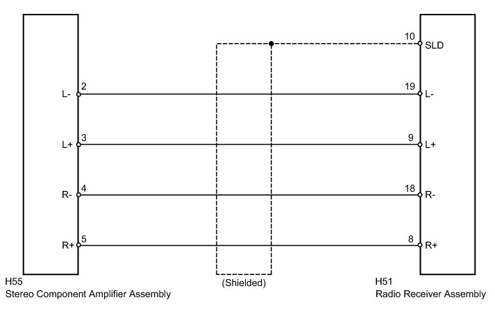 AUDIO / VIDEO: AUDIO AND VISUAL SYSTEM (w/o Navigation System): Sound Signal Circuit between Radio Receiver and Stereo Component Amplifier