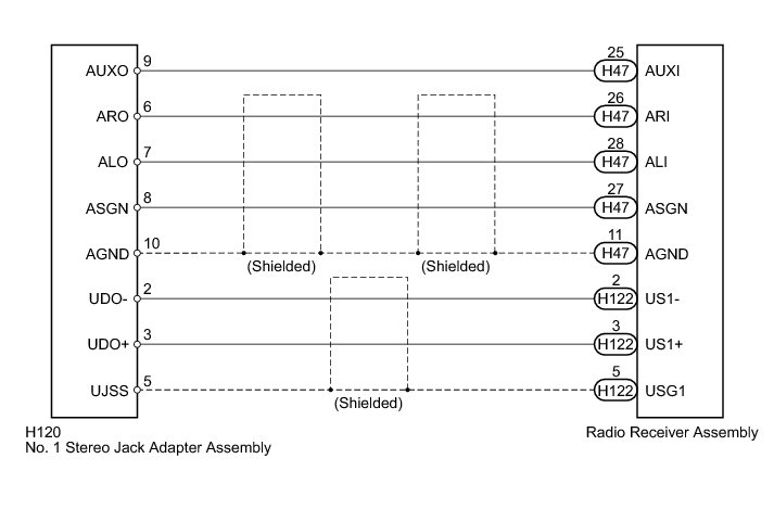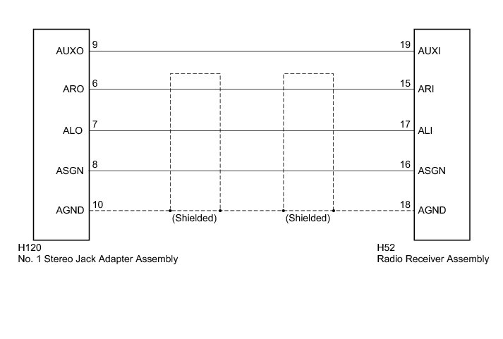 The No. 1 stereo jack adapter assembly sends the sound signal from an external device to the radio receiver assembly through this circuit.