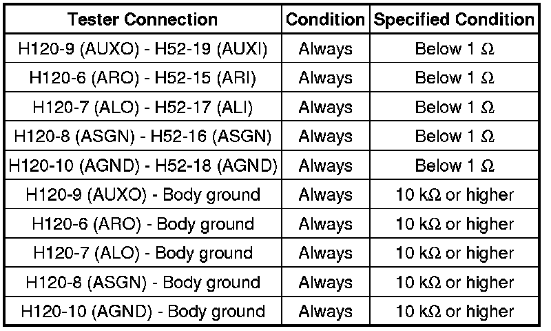AUDIO / VIDEO: AUDIO AND VISUAL SYSTEM (w/o Navigation System): Sound Signal Circuit between Radio Receiver and Stereo Jack Adapter