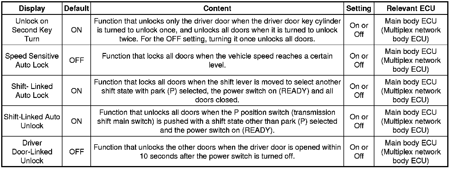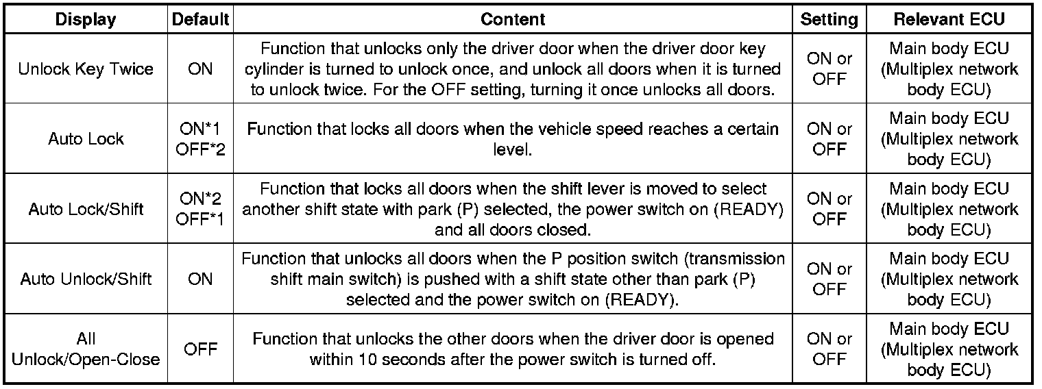 DOOR LOCK: POWER DOOR LOCK CONTROL SYSTEM: CUSTOMIZE PARAMETERS