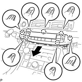 (a) Disengage the 7 claws and remove the air conditioning control assembly as shown in the illustration.