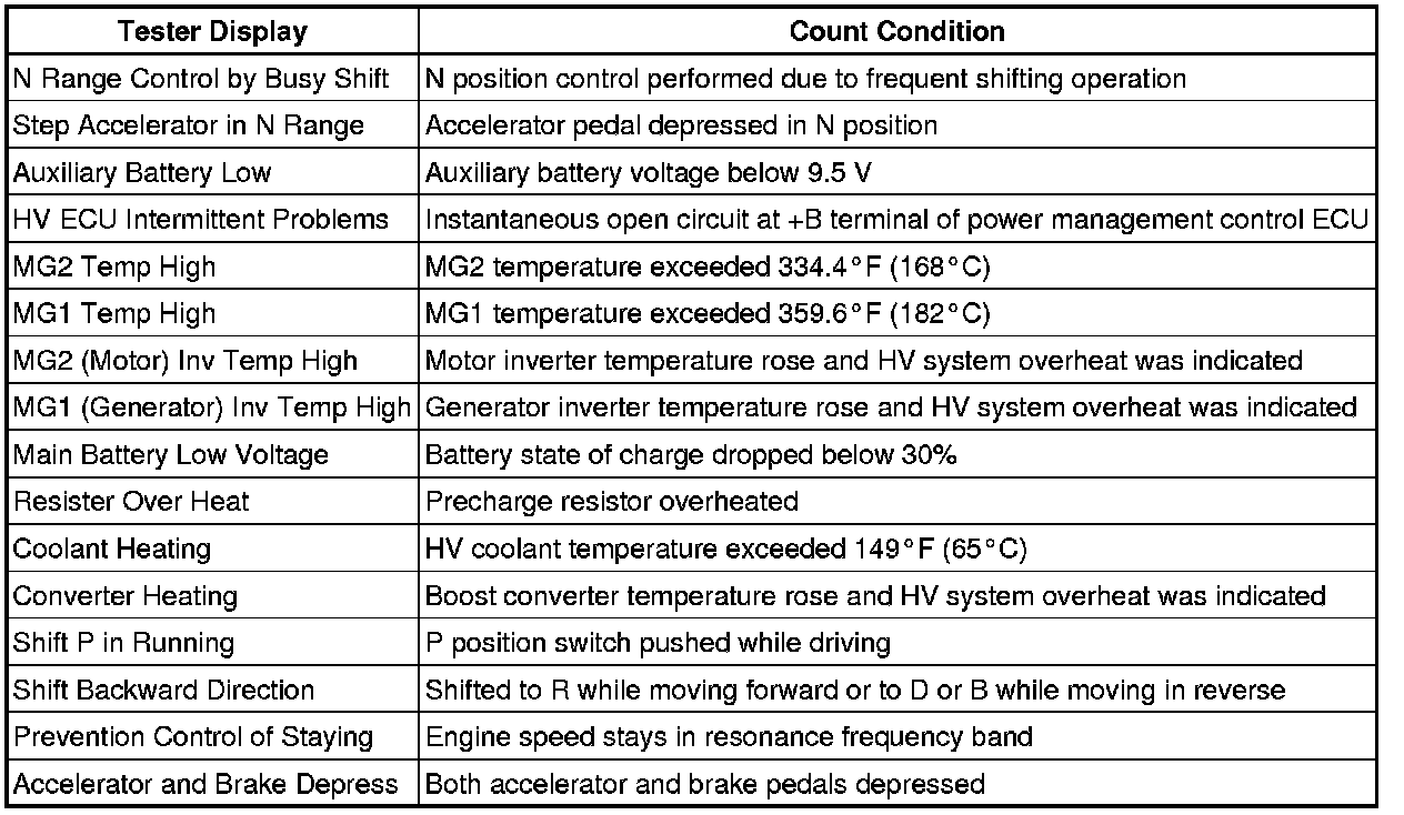 HYBRID / BATTERY CONTROL: HYBRID CONTROL SYSTEM: OPERATION HISTORY DATA