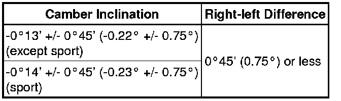 The body and suspension may be damaged if the camber cannot be correctly adjusted according to the tables above.