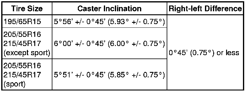 3. INSPECT CAMBER, CASTER AND STEERING AXIS INCLINATION